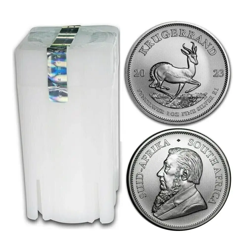 Тубус (25 монети) 1 унция Сребърна монета Крюгерранд, Южна Африка с ДДС на маржа